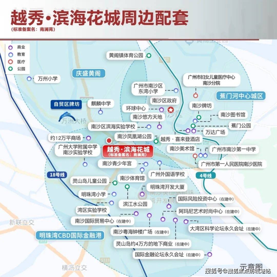 项目交通呈现“自驾优势突出、轨交有待完善”的特点。自驾方面,紧邻广澳高速,可快速通达中山、珠海等周边城市,同时通过南沙大道、番禺大道等主干道,约30分钟即可抵达番禺广场、万博CBD等核心商圈,对于有车一族而言,出行效率极高。轨道交通方面,规划中的地铁15号线体育馆站与项目距离较近,但具体开通时间尚未明确。目前已运营的地铁4号线分钟抵达,公共交通便利性有待提升。整体来看,更适合依赖自驾出行的家庭,而轨道交通的完善将进一步释放项目的交通价值。