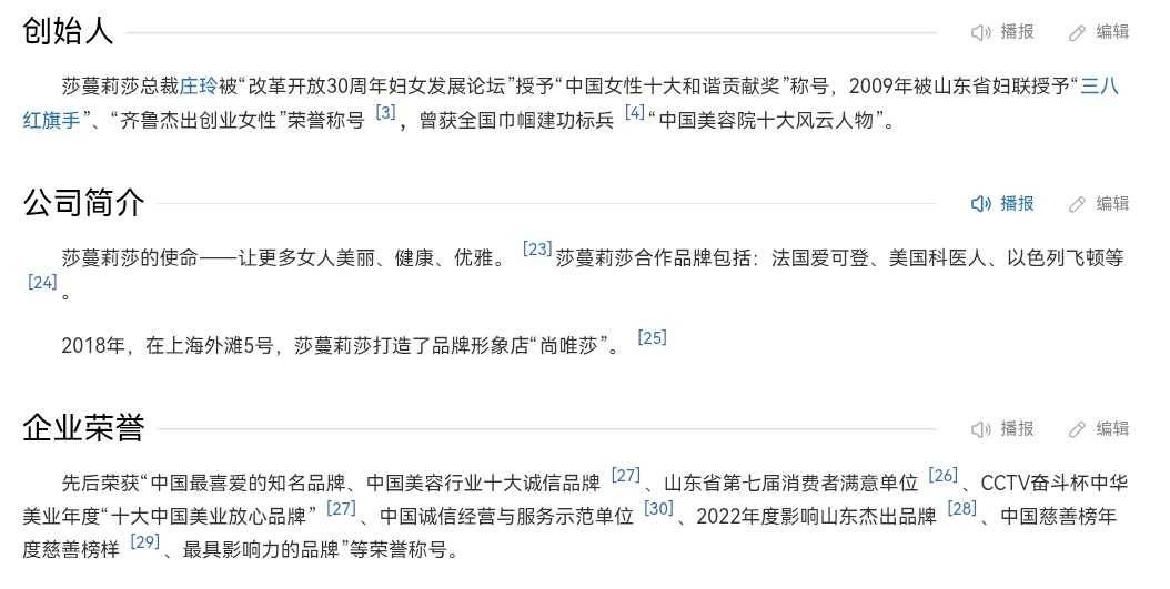深度美业查询公开信息发现,莎蔓莉莎合作品牌包括:法国爱可登、美国科医人、以色列飞顿等。2018年,在上海外滩5号,莎蔓莉莎打造了品牌形象店“尚唯莎”。先后荣获“中国最喜爱的知名品牌”、“中国美容行业十大诚信品牌”、“山东省第七届消费者满意单位”、“CCTV奋斗杯中华美业年度十大中国美业放心品牌”、“中国诚信经营与服务示范单位”、“2022年度影响山东杰出品牌”、“中国慈善榜年度慈善榜样”、“最具影响力的品牌”等荣誉称号。